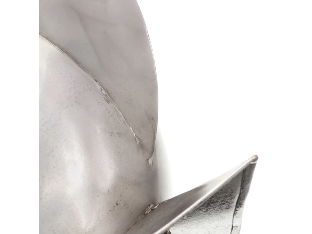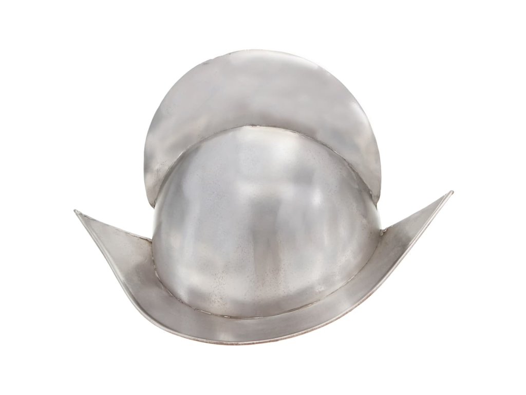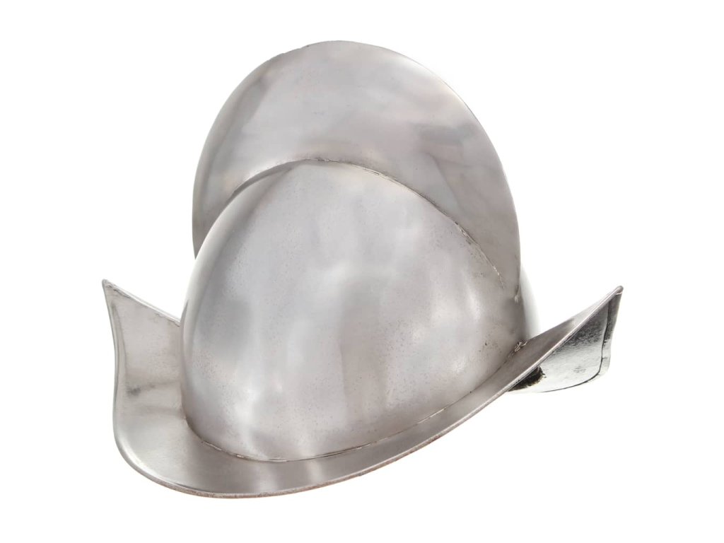 Přilba je přesná replika původní přilby španělské uniformy, která se rozšířila i do dalších zemí a je běžně označovaná morion nebo morion přilba. Je vyrobená z leštěné oceli 18. Poutavá přilba kombinuje původní styl s robustními materiály a dokonale doplní váš kostým bojovníka. Tento typ helmy dodnes používá Švýcarská garda ve Vatikánu. Jedná se také o atraktivní výstavní kus.