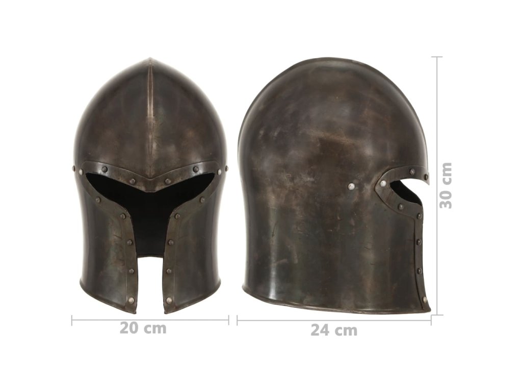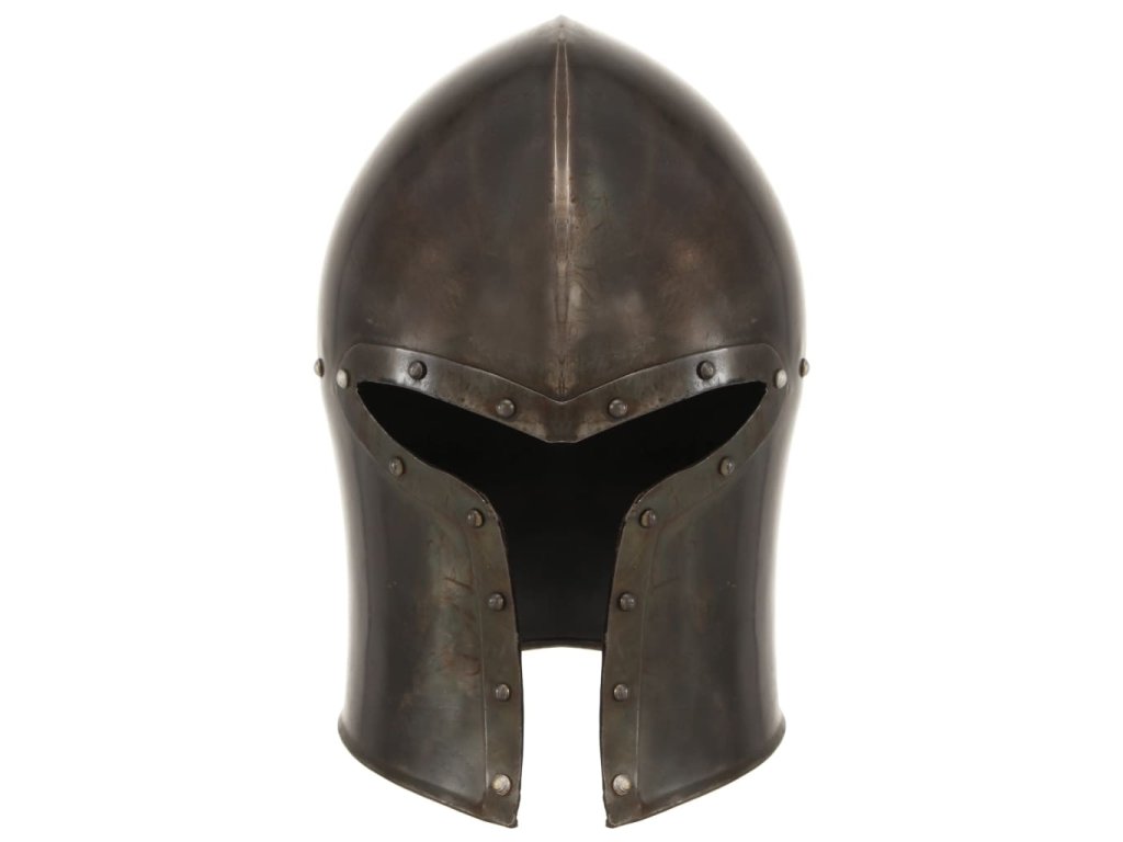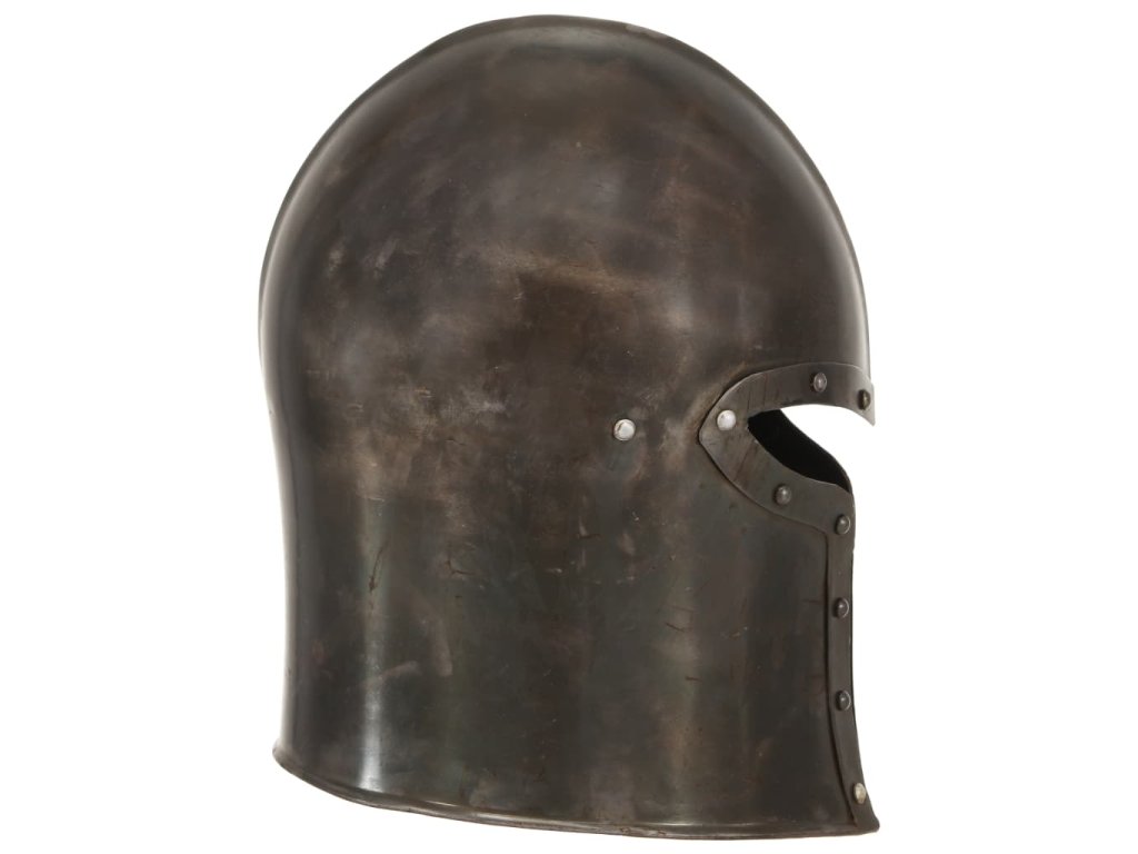 Přilba je replika středověké přilby barbuta. Je zhotovená z oceli 18. Kombinací původního designu s odolným materiálem vznikla působivá přilba, která dokonale doplní vaši rytířskou výbavu. Tato helma má otevřenou obličejovou část ve tvaru T, která odhaluje pouze oči, nos a pusu. Jedná se také o atraktivní výstavní kus.