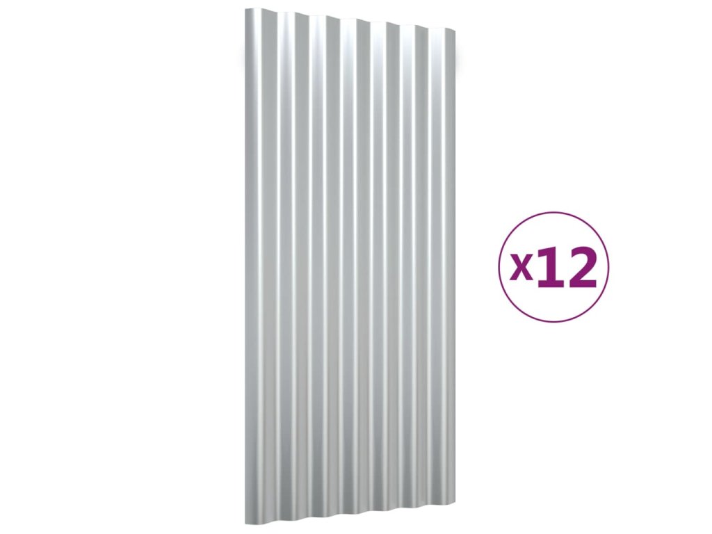 Střešní panely 12 ks pozinkovaná ocel stříbrné 80 x 36 cm 319137