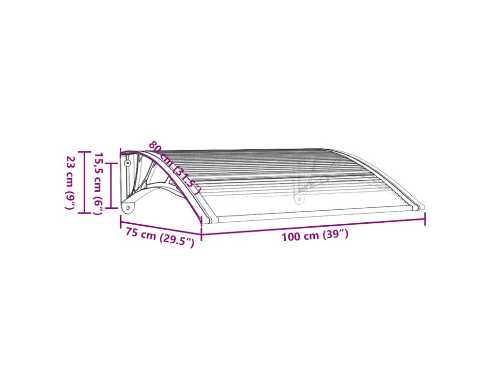 Stříška na dveře šedá a průhledná 100 x 75 cm polykarbonát 153589
