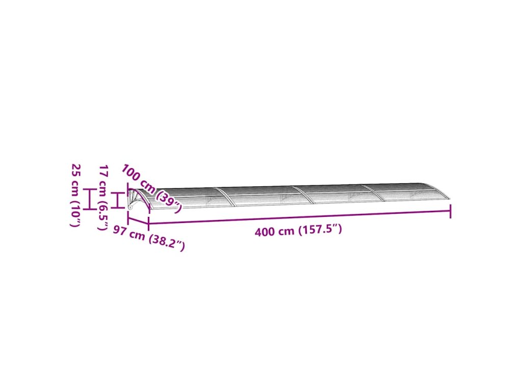 Stříška nad dveře černá 400 x 100 cm polykarbonát 153602