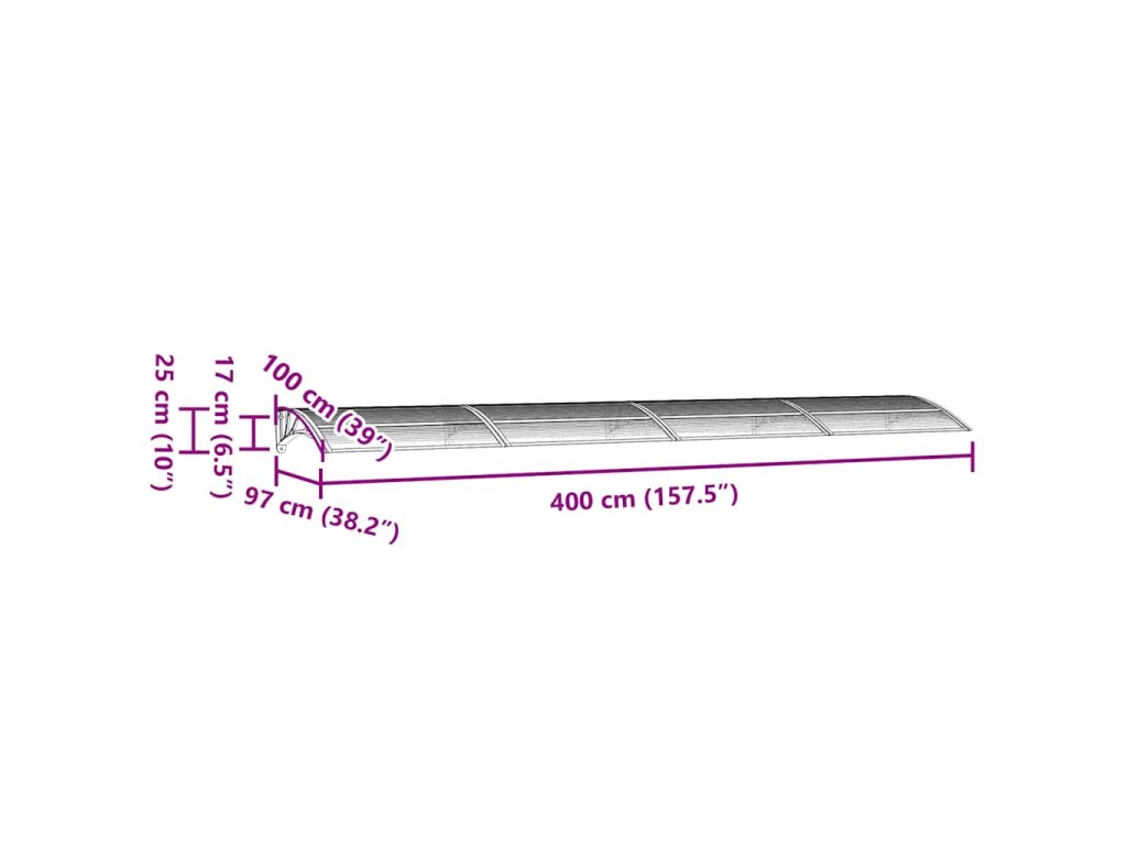 Stříška nad dveře šedá 400 x 100 cm polykarbonát 153601