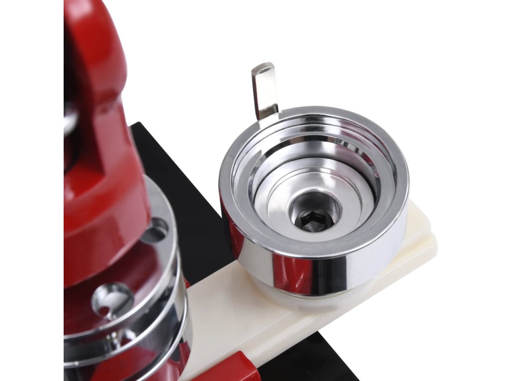 Stroj pro výrobu placek dodáváme se sadou matric vhodných pro výrobu 37mm butonů. Zásilka obsahuje 500 setů prázdných 37mm kulatých butonů, každý set s kovovým předním dílem, krycí fólií a zadním dílem se špendlíkem. Design zarážky zaručuje dobré zarovnání horní a dolní matrice. Posuvná základna je řešená speciálně pro přesnější a rychlejší práci. Texturovaná rukojeť je uživatelsky příjemná a vyžaduje jen lehkou sílu k vytvoření odznaku, a proto se zařízení velmi snadno ovládá. Balení obsahuje kruhový řezák, takže můžete upravit průměr řezu podle konkrétních potřeb.
