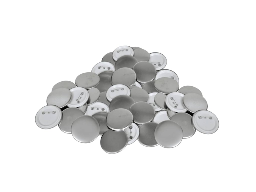 - Kompletní set butonů s kovovým předním dílem, krycí fólií a zadním dílem se špendlíkem