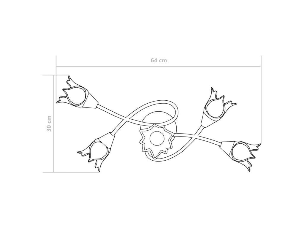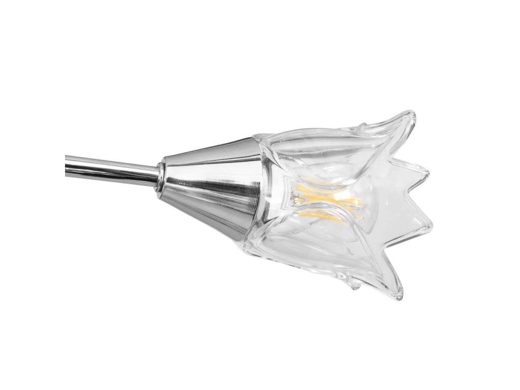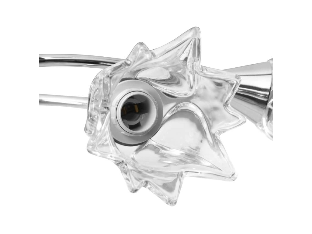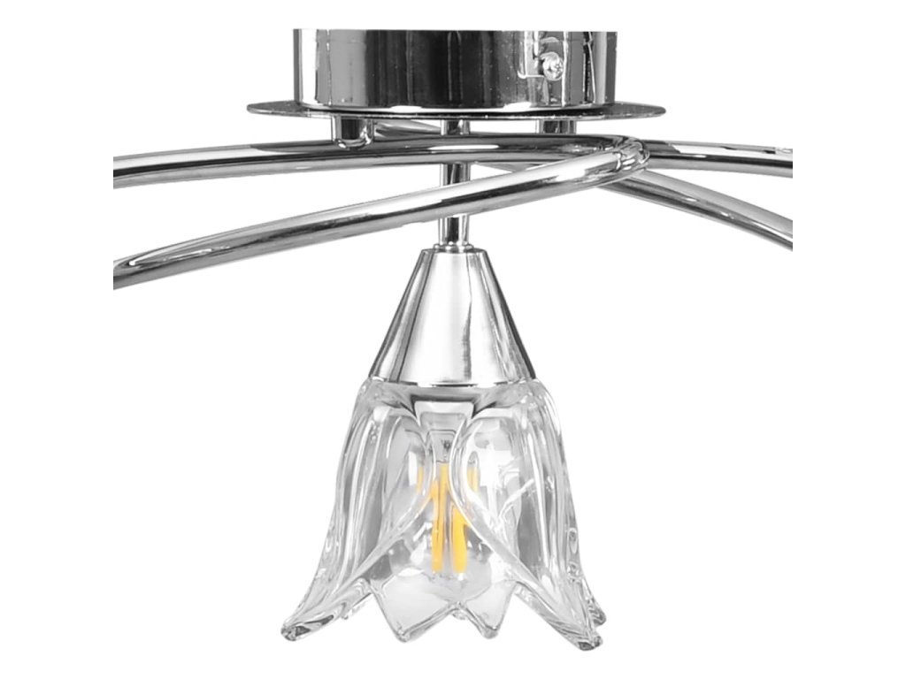 Světlo bez problémů namontujete na všechny typy stropů, jelikož disponuje odolnou kovovou základnou. Elegantní vzhled pak doplňuje pět propletených ramen z pochromované oceli a průhledná skleněná svítidla ve tvaru tulipánů. Saténový chromovaný povrch působí moderním dojmem, takže se svítidlo skvěle hodí do obývacího pokoje nebo ložnice všech stylů zařízení. Lampa se snadno čistí a udržuje – postačí vám navlhčený hadřík.
