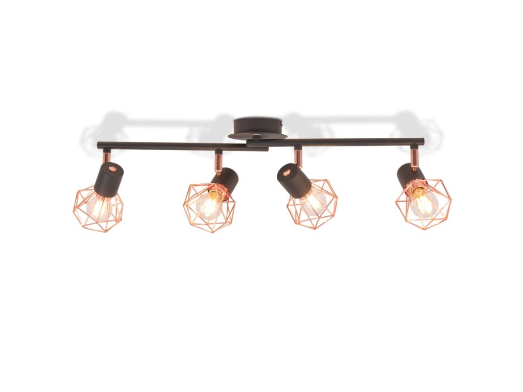 Stropní světlo se 4 bodovkami, E14, černá a měď 244391