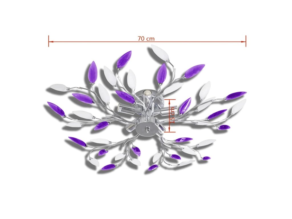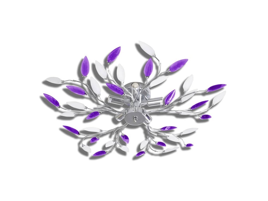 Stropní svítidlo, bílé a fialové křišťálové listy, na 5 žárovek E14 241477