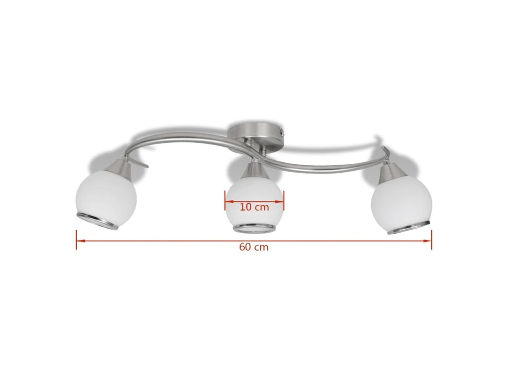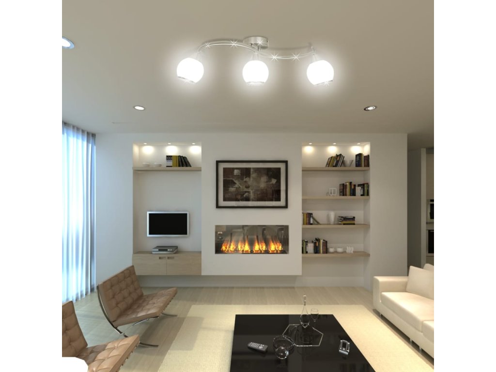Tato lampa se díky své kvalitní kovové základně dá snadno namontovat na jakýkoliv strop. Stínítka z opálového skla se stříbrnými okraji, umístěná na zvlněné kovové kolejnici, dodávají svítidlu elegantní vzhled. Světlo bude nádherně prosvítat těmito jemnými opálovými skleněnými stínítky a prozáří všechny kouty místnosti. Toto exkluzivní stropní svítidlo bude zaručeně vynikat svou příjemnou jednoduchostí.