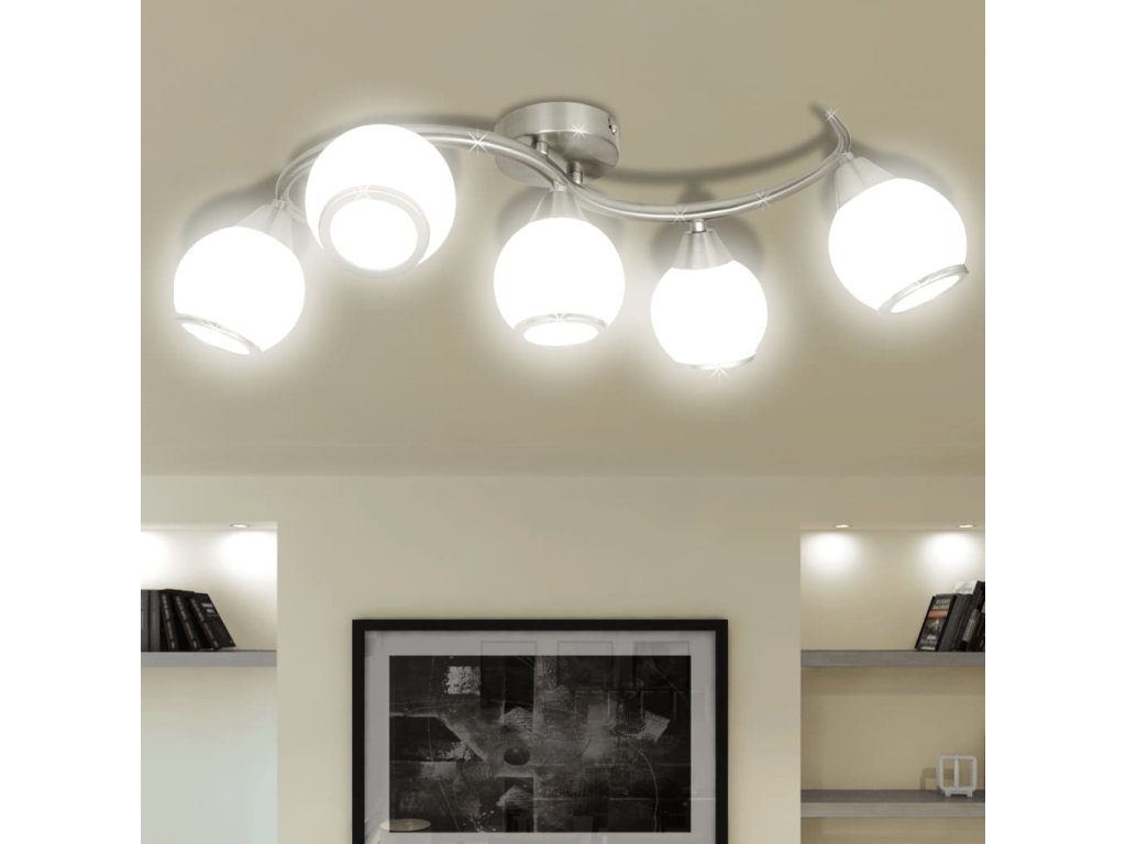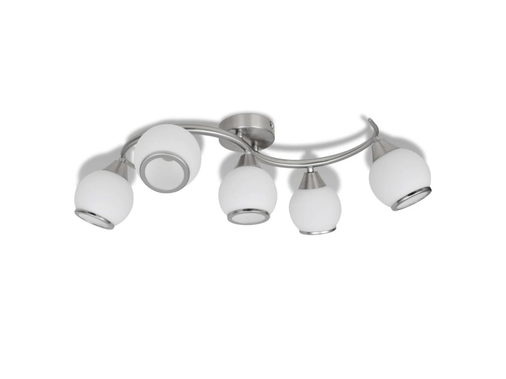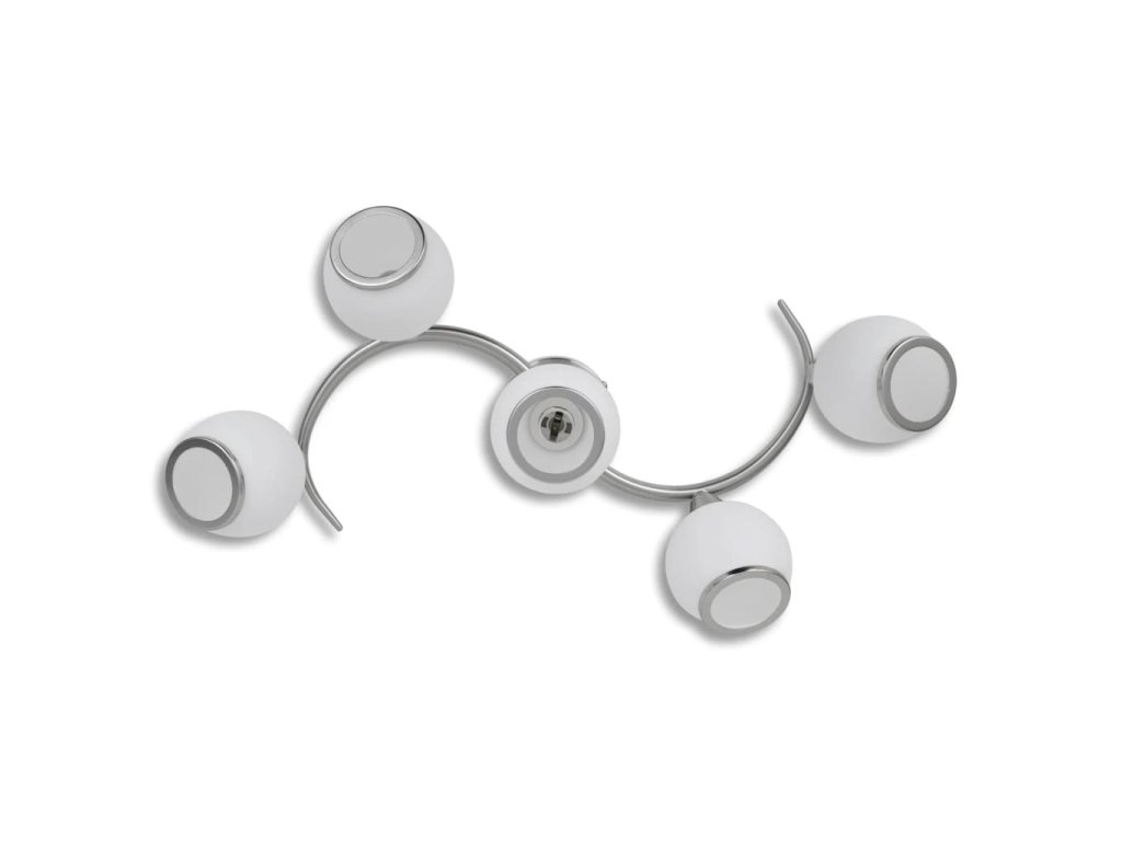 Tato lampa se díky své kvalitní kovové základně dá snadno namontovat na jakýkoliv strop. Stínítka z opálového skla se stříbrnými okraji, umístěná na zvlněné kovové kolejnici, dodávají svítidlu elegantní vzhled. Světlo bude nádherně prosvítat těmito jemnými opálovými skleněnými stínítky a prozáří všechny kouty místnosti. Toto exkluzivní stropní svítidlo bude zaručeně vynikat svou příjemnou jednoduchostí.