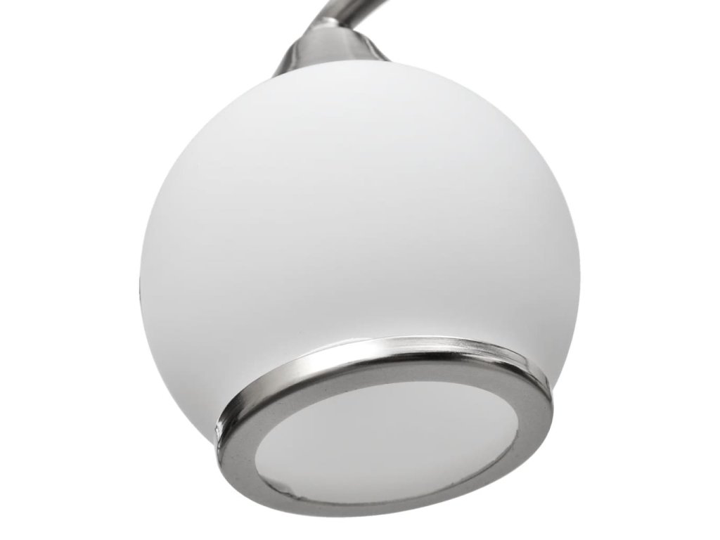 Toto jedinečné stropní svítidlo se pěti skleněnými stínidly se vyznačuje moderním designem. Povrchová úprava ze saténového niklu dodává teto lampě současný vzhled, což se perfektně hodí do každého moderního obývacího pokoje či ložnice.