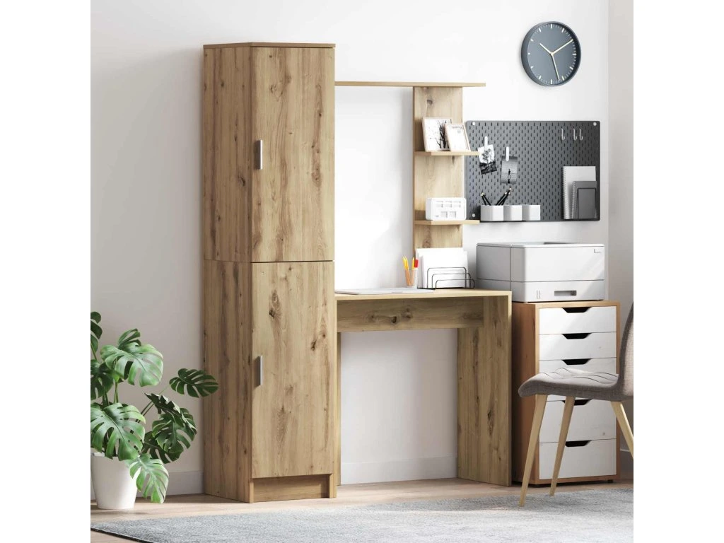 - Praktické úložné možnosti: Díky policím na deskách má stůl spoustu místa na knihy, dokumenty a další kancelářské potřeby, takže plní funkci pracovního prostoru i organizační jednotky. Dveře na pantech chrání předměty před prachem a zabraňují chaosu, když jsou zavřené.