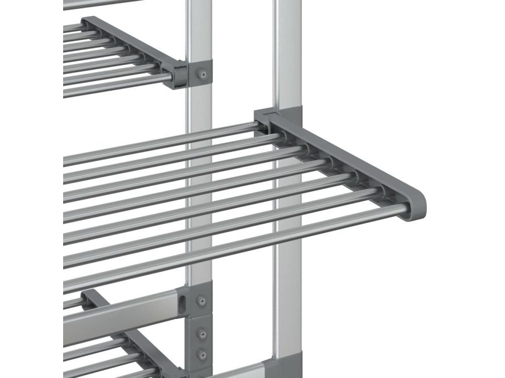 - Skládací design: Vzhledem k tomu, že každé patro sušáku lze složit samostatně, lze použít jen jednu stranu sušáku a umístit jej přímo na stěnu nebo radiátor.