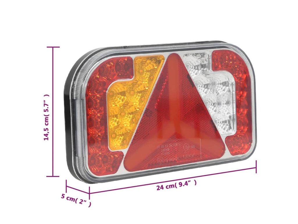 - Různé použití: Tato multifunkční světla lze použít jako levé směrové světlo, pravé směrové světlo, mlhové světlo, pravé zadní světlo, levé zadní světlo, brzdové světlo a couvací světlo.