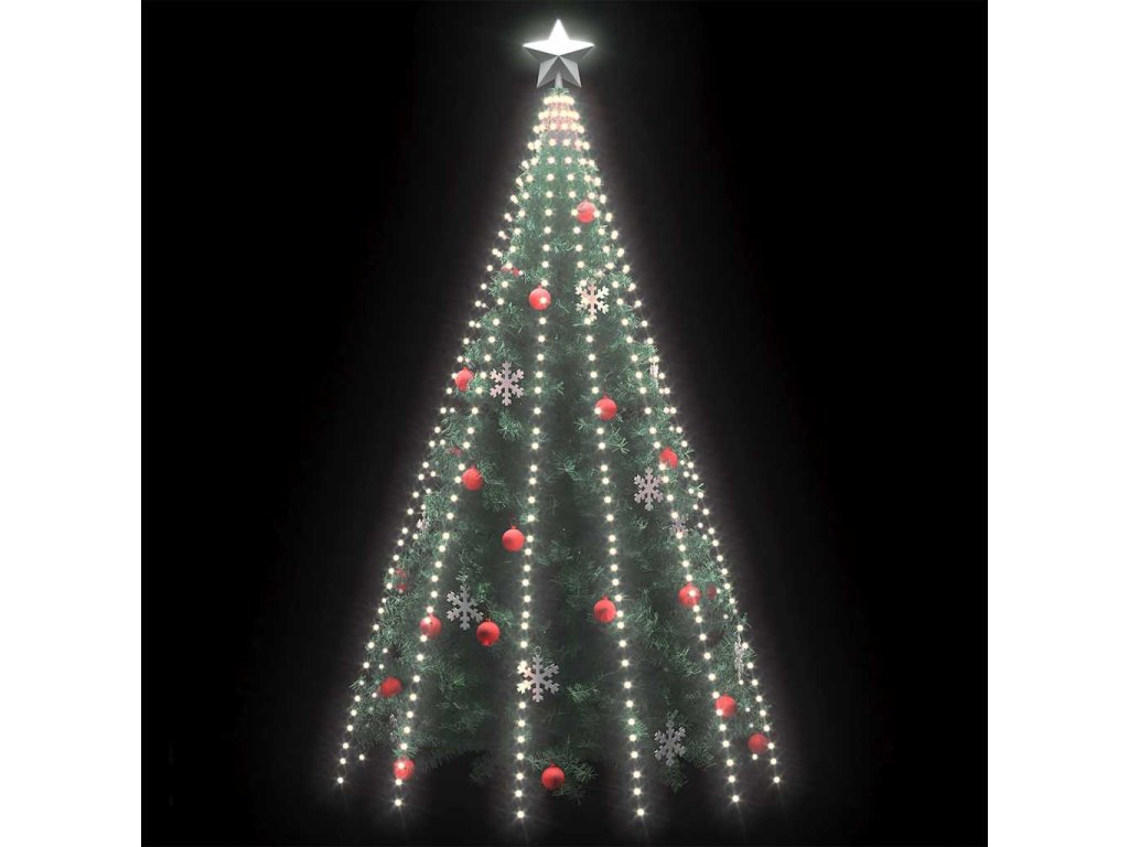Světýlka obsahují 500 LED diod, které mají 8 různých světelných režimů: kombinace všech, pomalá záře, blikání/mihotání, svícení ve vlnách, efekt tekoucí vody, sekvenční svícení, stálé svícení a pomalé blednutí. Světla se krásně rozzáří a vytvoří kouzelnou sváteční atmosféru. Tato překrásná vánoční dekorace je voděodolná, takže je vhodná pro vnitřní i venkovní použití. Tuto dekoraci můžete snadno umístit na špičku vašeho vánočního stromku a světýlka se přirozeně rozmístí až k podlaze. Světýlka budou opravdovou potěchou por oči, obzvláště večer, a také slouží jako útulný zdroj světla v místnosti. Když právě tato LED světýlka nepoužíváte, můžete je snadno uschovat na příští rok.