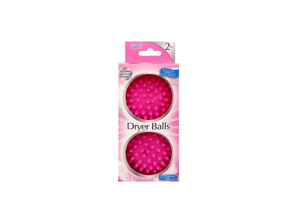 Swirl eco friendly míčky do sušičky růžové - 2ks speciální míčky do sušičky, které jsou vyrobené ze speciálního plastu, který odolává často vysokým teplotám. Míčky mají malé výstupky, kterými prádlo zjemňují, odstraňují elektrostatický náboj a zároveň prádlo načechrávají. Díky použitím těchto míčků bude vaše prádlo méně pomačkané a v případě sušení například prošívaných peřin, bundy a dalšího podobného zboží bude vnitřní tkanina rovnoměrně usušená. Tyto míčky nejslouží pro aplikaci vonného oleje. Balení obsahuje 2ks míčků