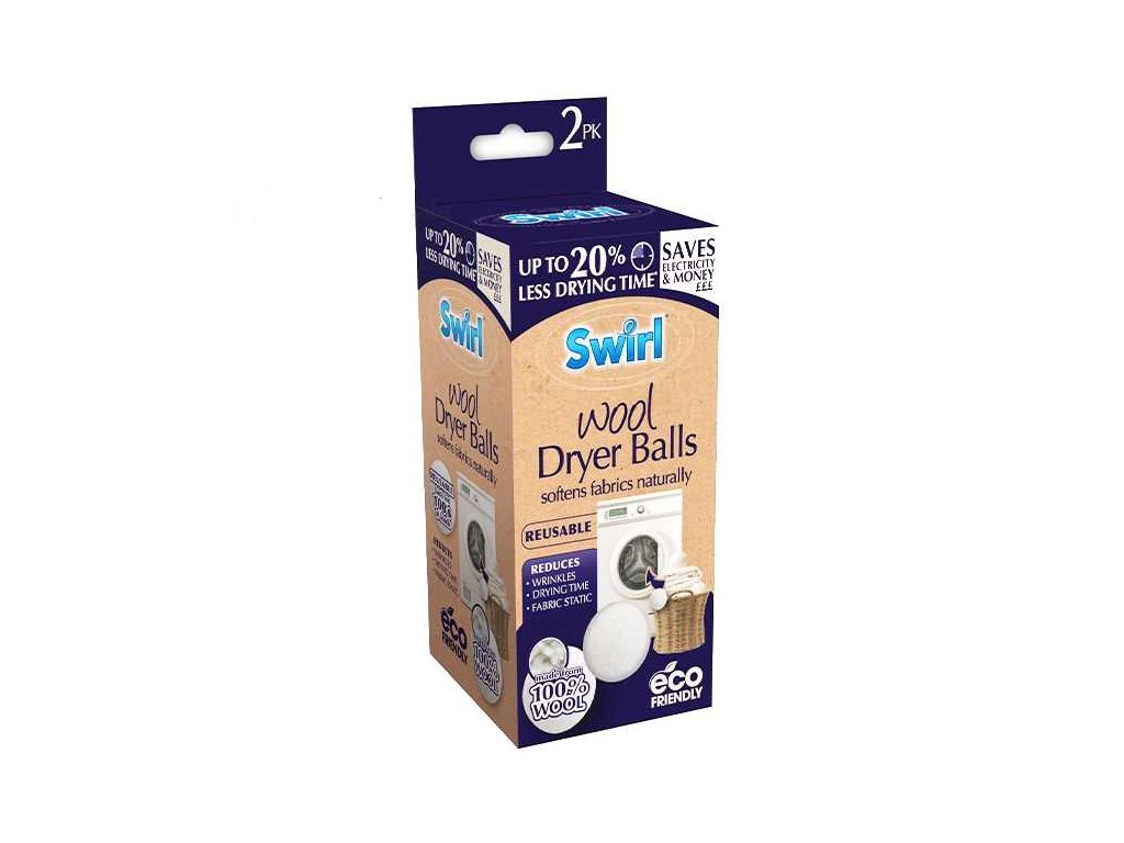 Swirl Wool Balls ekologické míčky do sušičky ze 100% vlny - 2ks.Sušicí vlněné míčky pomohou zkrátit dobu sušení až o 20% zvedáním a oddělováním prádla, což umožňuje horkému vzduchu lépe cirkulovat a rychleji sušit. Ušetříte čas a elektřinu! Zdravá alternativa k sušičkám a běžným plastovým míčkům bez chemikálií. Opakovaně použitelné a ekologické. Vydrží až 500 praní. Do míčků je možné také aplikovat Váš oblíbený parfém do sušičky nebo éterický vonný olej. Stačí nakapat na míček a počkat nežli se tekutina vsákne, následně vložit do sušičky. Po usušení míček vyndejte a nechte větrat. Nepoužívejte do pračky!100% vlna zkracuje dobu sušení Jemně přirozeně změkčuje oblečení Vydrží 500 umytí!Možnost aplikovat vůni do sušičky nebo parfém2 ks v balení