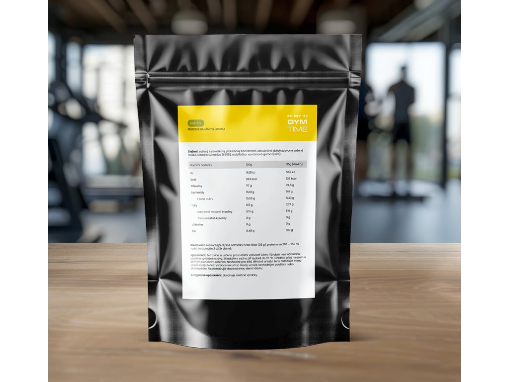 Syrovátkový protein My Gym Time s přírodním banánovým aroma je ideálním doplňkem pro všechny sportovce i aktivní jedince, kteří chtějí efektivně podpořit růst a regeneraci svalové hmoty. Obsahuje vysoký podíl bílkovin (až 70 %) a minimální množství tuků a sacharidů, díky čemuž je vhodný jak do fáze nabírání svalů, tak i při redukčních dietách.
