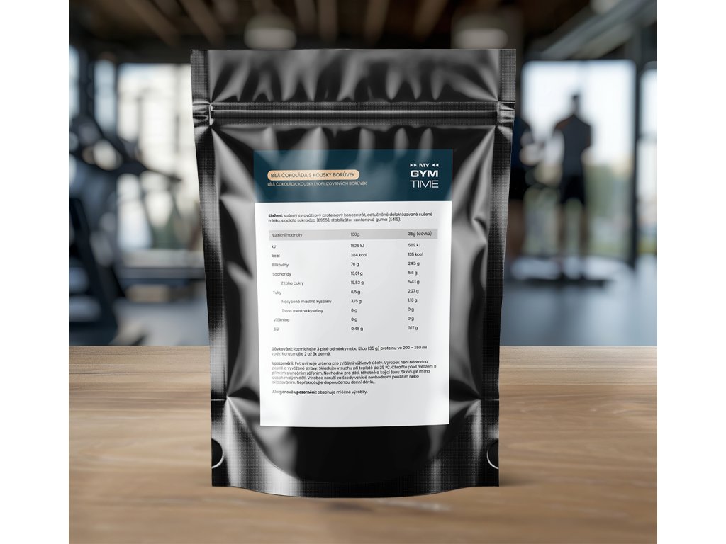 Syrovátkový protein My Gym Time bílá čokoláda s kousky lyofilizovaných borůvek je ideálním doplňkem pro všechny sportovce i aktivní jedince, kteří chtějí efektivně podpořit růst a regeneraci svalové hmoty. Obsahuje vysoký podíl bílkovin (až 70 %) a minimální množství tuků a sacharidů, díky čemuž je vhodný jak do fáze nabírání svalů, tak i při redukčních dietách.