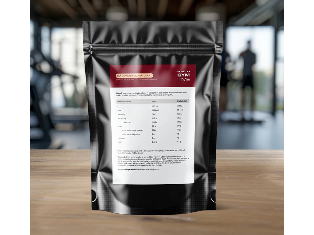 Syrovátkový protein My Gym Time bílá čokoláda s kousky lyofilizovaných jahod je ideálním doplňkem pro všechny sportovce i aktivní jedince, kteří chtějí efektivně podpořit růst a regeneraci svalové hmoty. Obsahuje vysoký podíl bílkovin (až 70 %) a minimální množství tuků a sacharidů, díky čemuž je vhodný jak do fáze nabírání svalů, tak i při redukčních dietách.