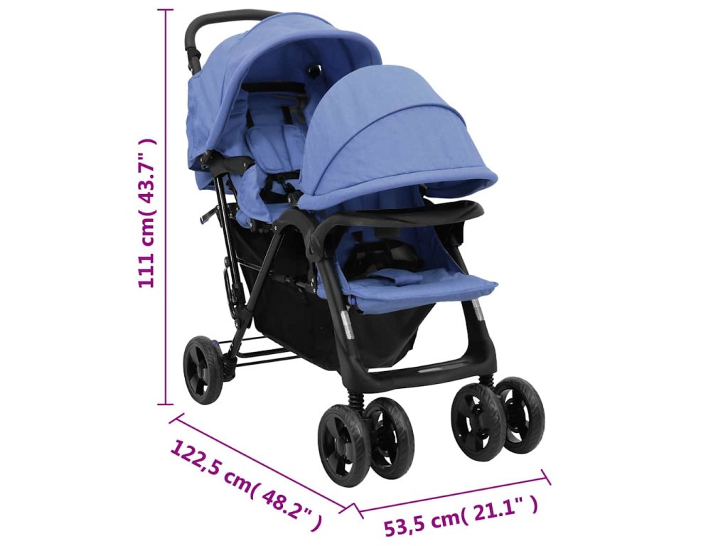 Tandemový dvojitý kočárek námořnická modř ocel 10350