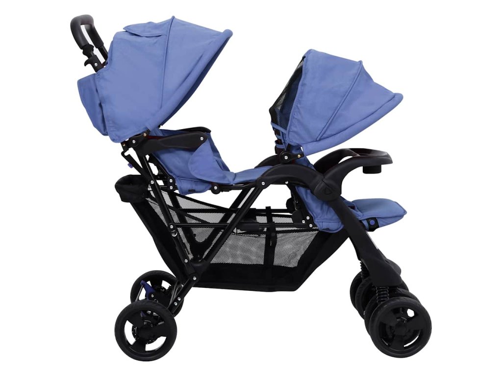 Tento tandemový kočárek pro dvojčata je ideální na procházky, výlety nebo nákupy.