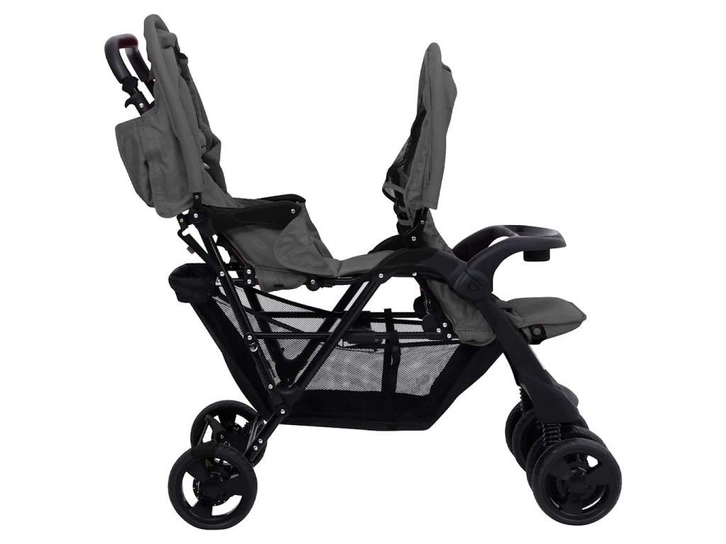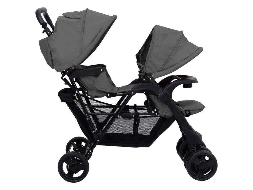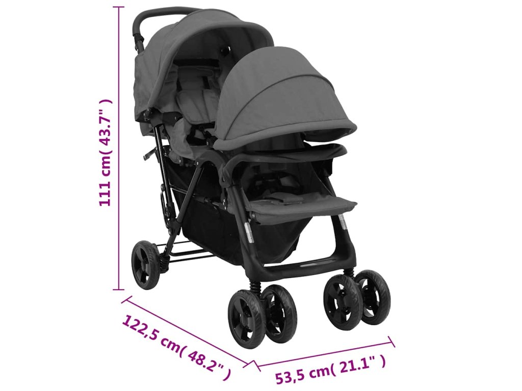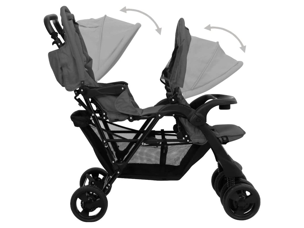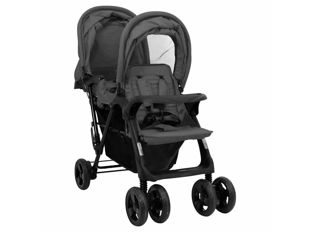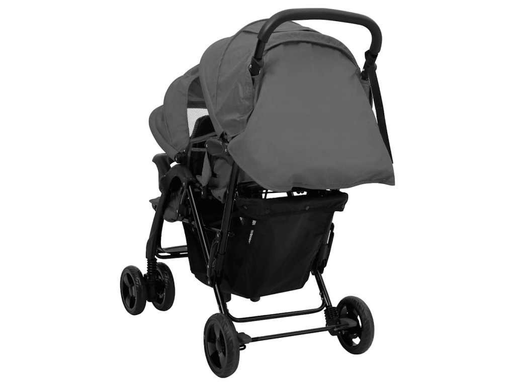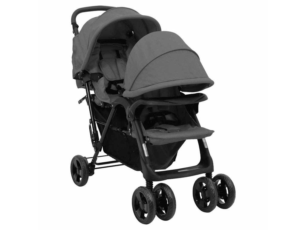 Tandemový dvojitý kočárek tmavě šedý ocel 10348