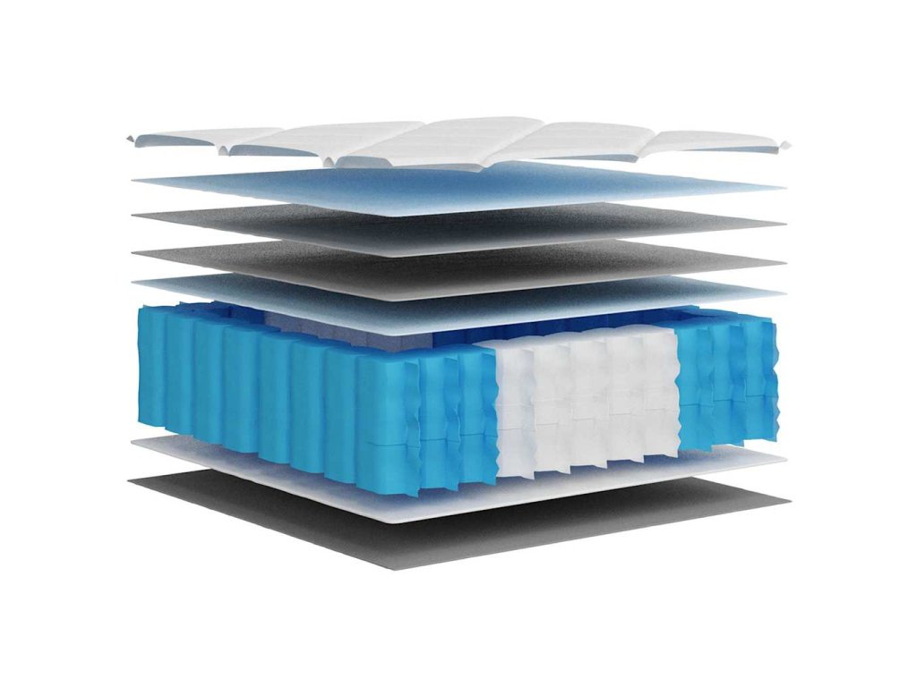 - Zvýšený komfort: Pružinová matrace má více vrstev, včetně pěnové, izolační a pružinové vrstvy. Tato kombinace zajišťuje mírnou až střední tvrdost a komfort pro všechny polohy při spánku. Matrace navíc účinně tlumí hluk a vibrace způsobené převalováním a otáčením, čímž zajišťuje klidný a nerušený spánek.