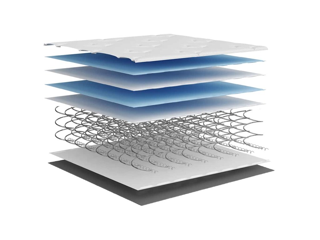 - Zvýšený komfort: Pružinová matrace má více vrstev, včetně pěnové, izolační a pružinové vrstvy. Tato kombinace zajišťuje mírnou až střední tvrdost a komfort pro všechny polohy při spánku. Matrace navíc účinně tlumí hluk a vibrace způsobené převalováním a otáčením, čímž zajišťuje klidný a nerušený spánek.