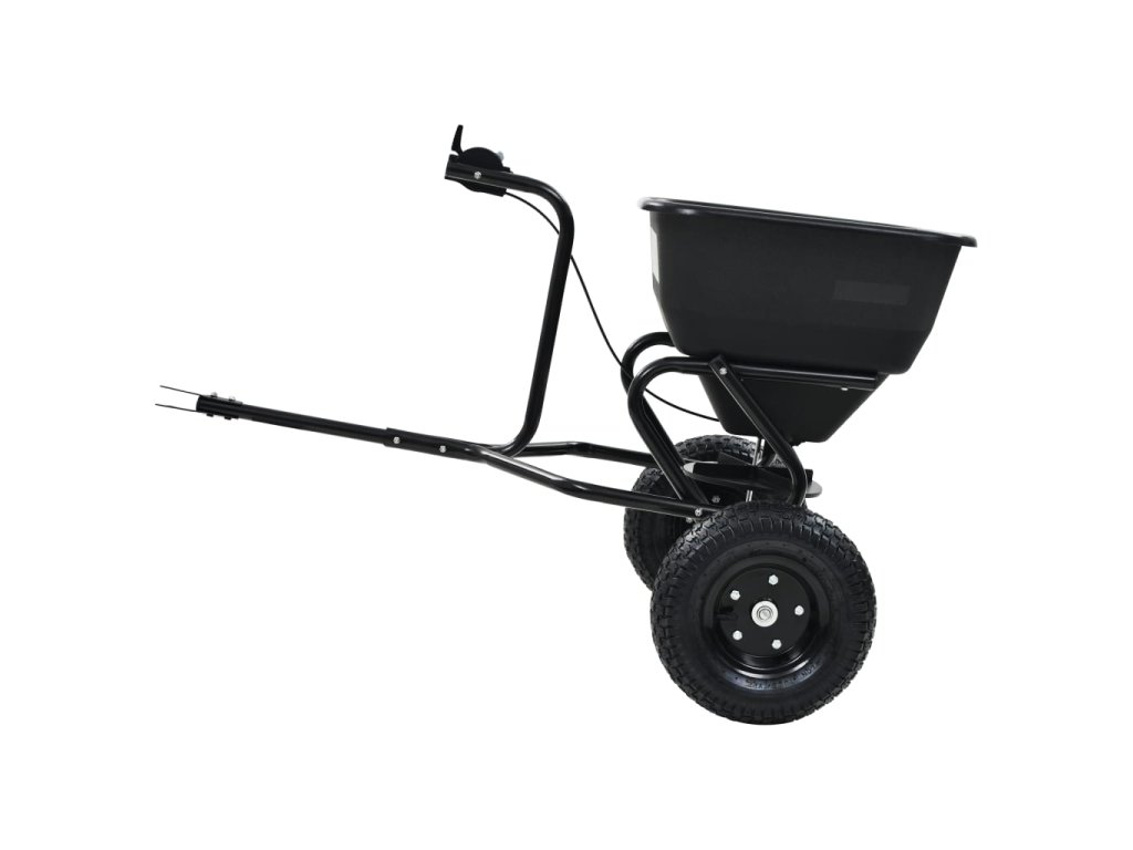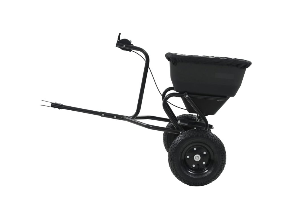 Robustní rozmetadlo má trubkový ocelový rám, který je odolný vůči korozi a jen tak se nepoškodí. Disponuje rovněž velkou násypkou z PVC, kterou můžete naplnit solí, semeny či hnojivem. Zahradní rozmetadlo je navrženo tak, aby přesně trefilo rovnováhu mezi rozprašováním příliš velkého či příliš malého množství travního osiva, ani moc hustě ani moc řídce, tak, aby umožnilo zdravý růst trávy. Pomáhá také rovnoměrně roznášet trávníkové hnojivo, aby se snížilo riziko spálení. Rozmetadlo na trávník je dodáváno s kabelově ovládaným ovladačem na rukojeti, díky kterému můžete snadno nastavovat rychlost rozptylu pro větší účinnost. Součástí designu jsou dvě velká široká kola a dlouhá rukojeť, jež vám umožní s tímto nástrojem snadno manipulovat ve vaší zahradě.