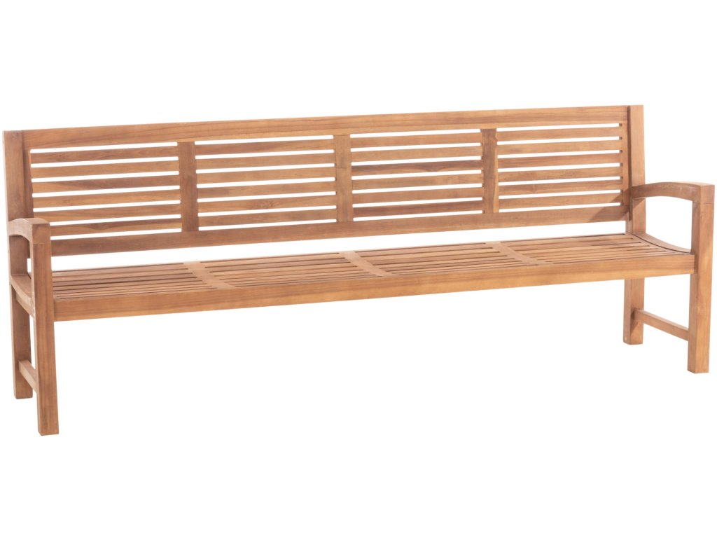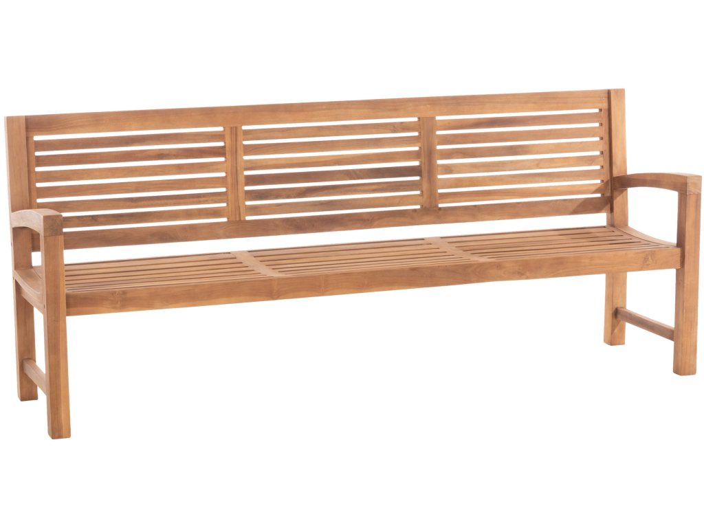 Dřevěná lavička HaldenTato robustní lavička z masivního teakového dřeva je ideálním způsobem, jak si odpočinout a užít si pobyt venku. Její mimořádně kvalitní a odolný materiál je určen pro pohodlné sezení. Nadčasový design příček, mírně prohnutý sedák a příjemně nakloněné opěradlo jsou atraktivními detaily. Celkový vzhled dotvářejí pohodlné područky. Robustní nohy jsou vyrobeny z masivních dřevěných prken o tloušťce 6x6 cm. Zahradní nábytek z teakového dřeva lze ponechat venku po celý rok. Pro dlouhodobé udržení barvy teakového dřeva se doporučují vhodné oleje na ošetřování, které jsou v případě potřeby k dostání u specializovaných prodejců.