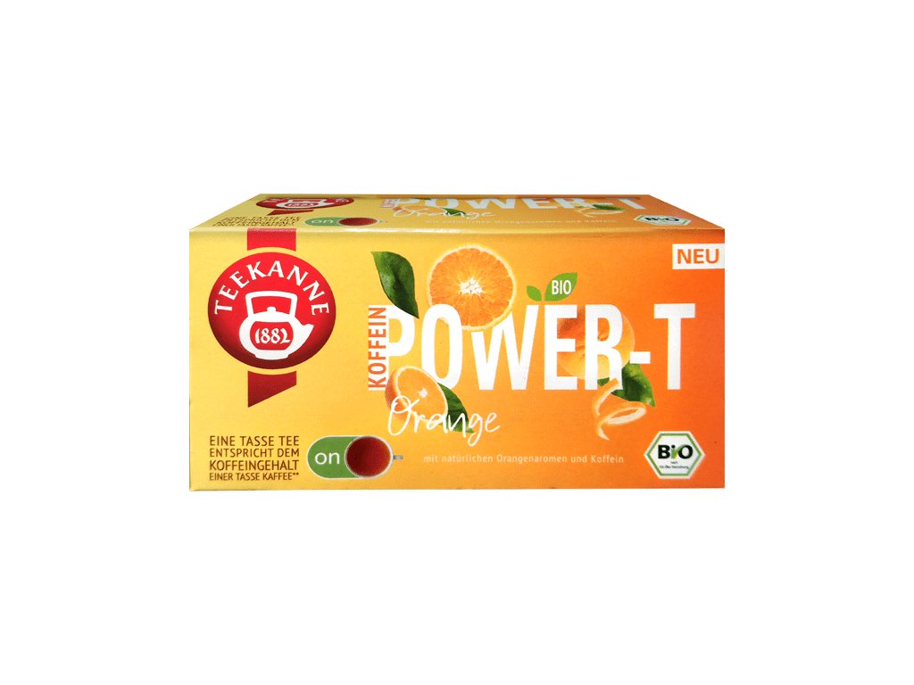 TEEKANNE - Ovocný čaj s KOFEINEM POWER-T ORANGE - Ovocný čaj směs s přírodní příchutí pomerančů a extraktem ze zeleného čaje s kofeinem. Bez laktózy a bez lepku. Vhodné pro vegany. Šálek čaje obsahuje tolik kofeinu jako šálek kávy! Doporučená denní konzumace 2 až max. 3 šálky.