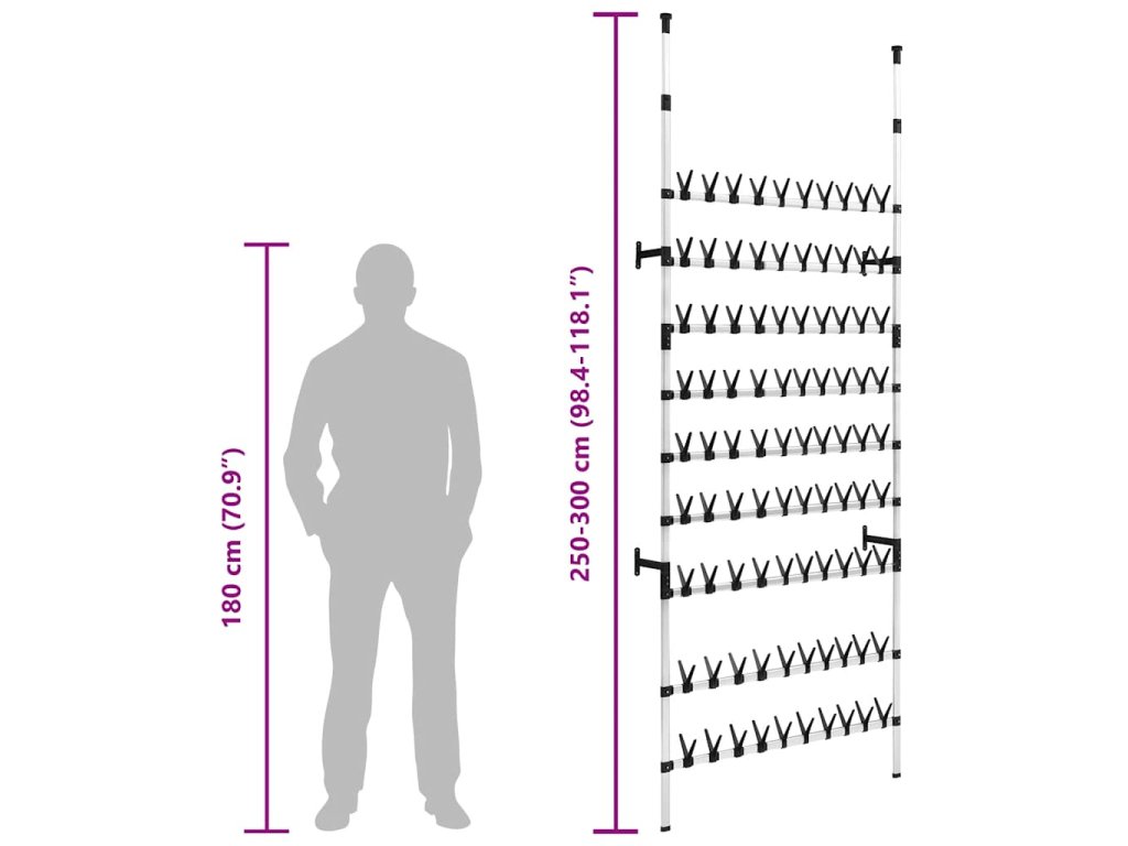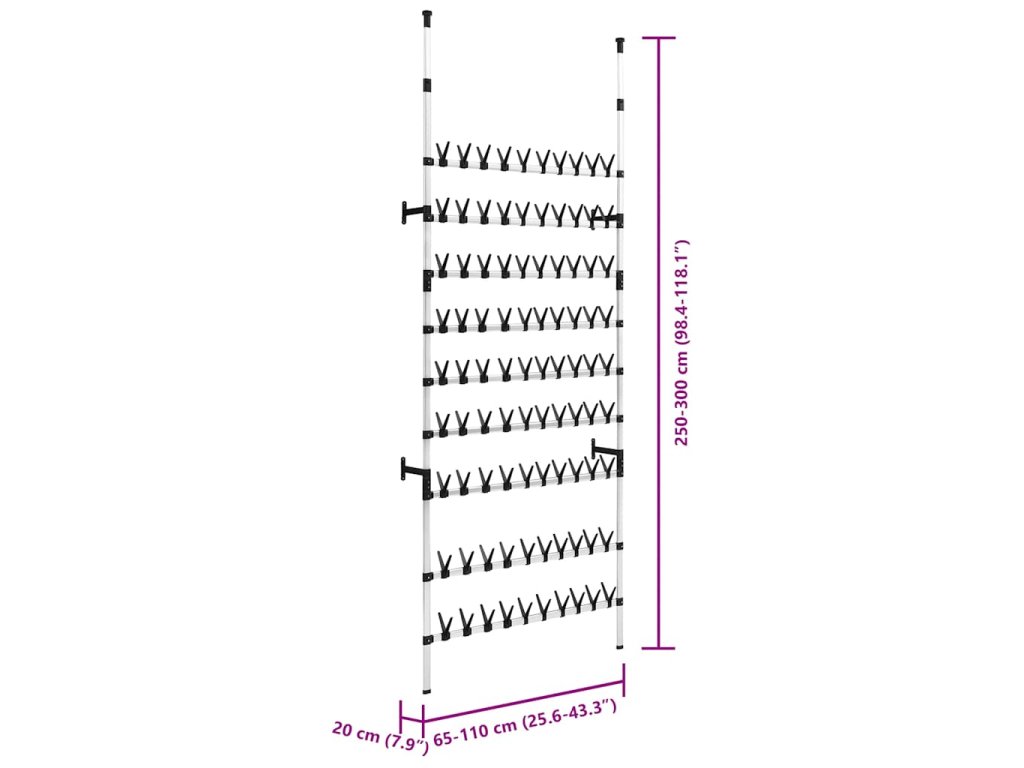 Teleskopický botník je vyrobený z hliníku, takže je odolný a robustní. Tento úložný regál s teleskopickým systémem lze nastavit do výšky i na šířku a přizpůsobit prostoru a vašim požadavkům. Nabízí jedinečný a důmyslný způsob jak si zorganizovat vaši obuv a zároveň ušetřit místo.