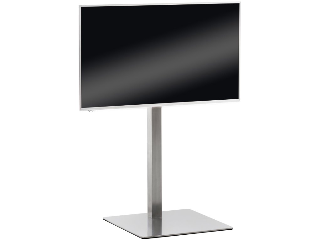 Stojan lze objednat se čtvercovou nebo kulatou základní deskou. Televizní stojan je vyroben z robustní nerezové oceli, takže unese televizory a monitory o hmotnosti až 40 kilogramů. Materiál je k dispozici ve stříbrné nebo matně černé barvě.