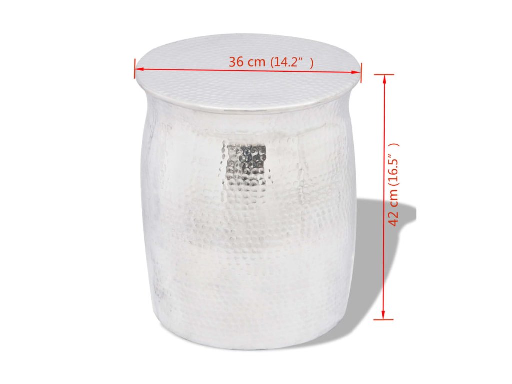 Tato stolička, která slouží též jako odkládací stolek, je vyrobená z vysoce kvalitního hliníku s leštěným povrchem, takže je extrémně odolná. Atraktivní tepaná povrchová úprava je také velmi zajímavá na dotek.
