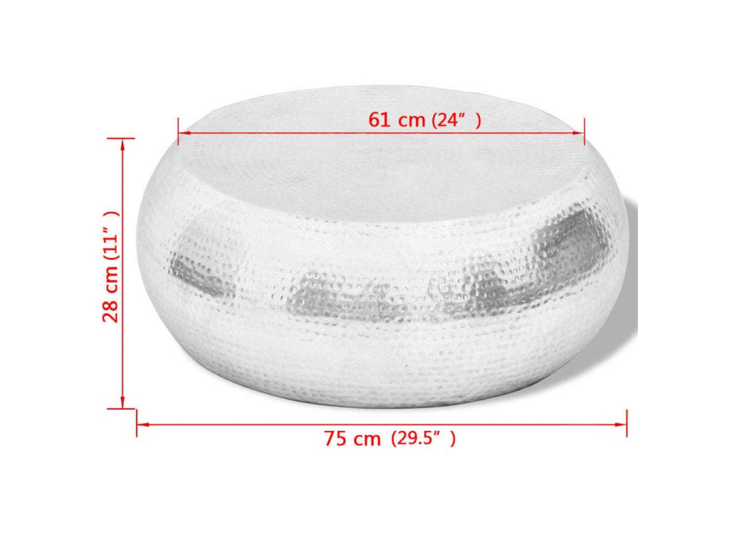 Je vyroben z vysoce kvalitního hliníku s leštěným povrchem, takže je extrémně odolný. Atraktivní tepaná povrchová úprava konferenčnímu stolku dodává taktilní texturu.