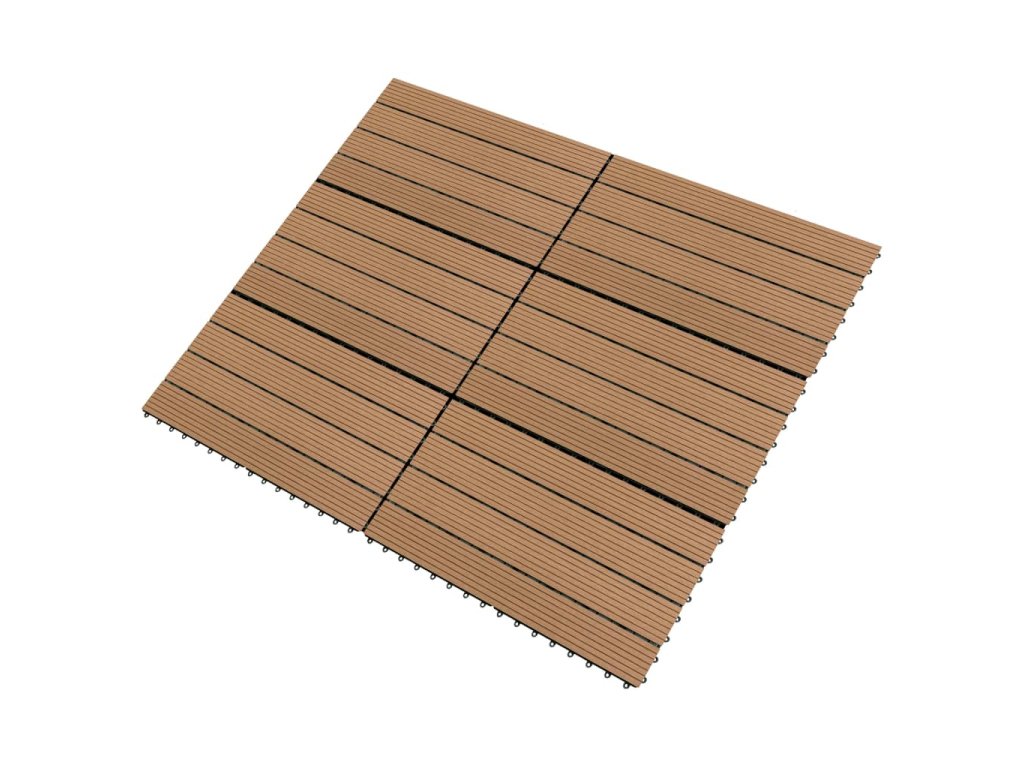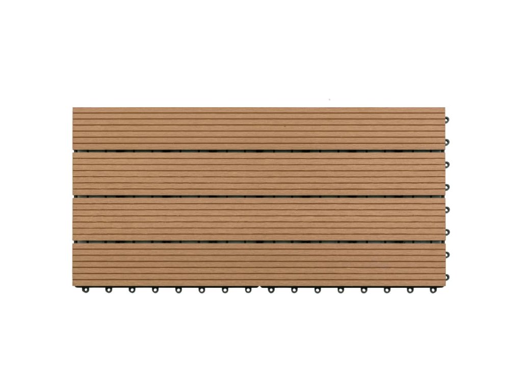 Tyto kvalitní terasové dlaždice z WPC lze spojit pomocí šikovného upínacího systému, který vám umožní snadnou a rychlou instalaci bez použití nářadí. Jelikož jsou vyrobené z kvalitního dřevoplastu, skvěle odolávají vodě a vydrží vám sloužit po dlouhá léta.
