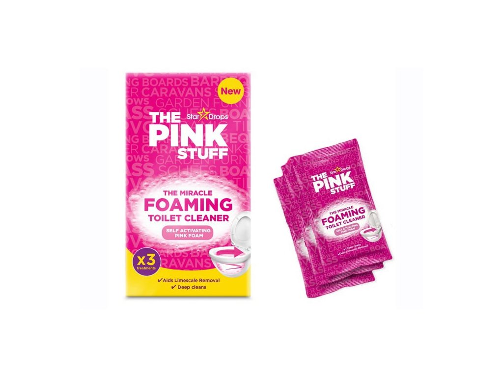 The Pink Stuff - zázračný čistící pěnivý prášek na toalety 3ks. Tento účinný čistič toalet poskytuje rychlý a pohodlný způsob hloubkového čištění toaletní mísy. Tato samoaktivační růžová pěna se zaměřuje pod povrch, hloubkově čistí, odstraňuje odolné skvrny, pachy a vodní kámen, přičemž zanechává naši charakteristickou svěží ovocnou vůni. Balení obsahuje 3 sáčky po 100g. Použití: Obsah sáčku se vysypte do záchodové mísy, což způsobí, že prášek vytvoří velké množství růžové pěny. Nechte 10 minut působit. Poté vyčistěte mísu štětkou na wc a spláchněte. Konečným výsledkem je dokonalá čistota.