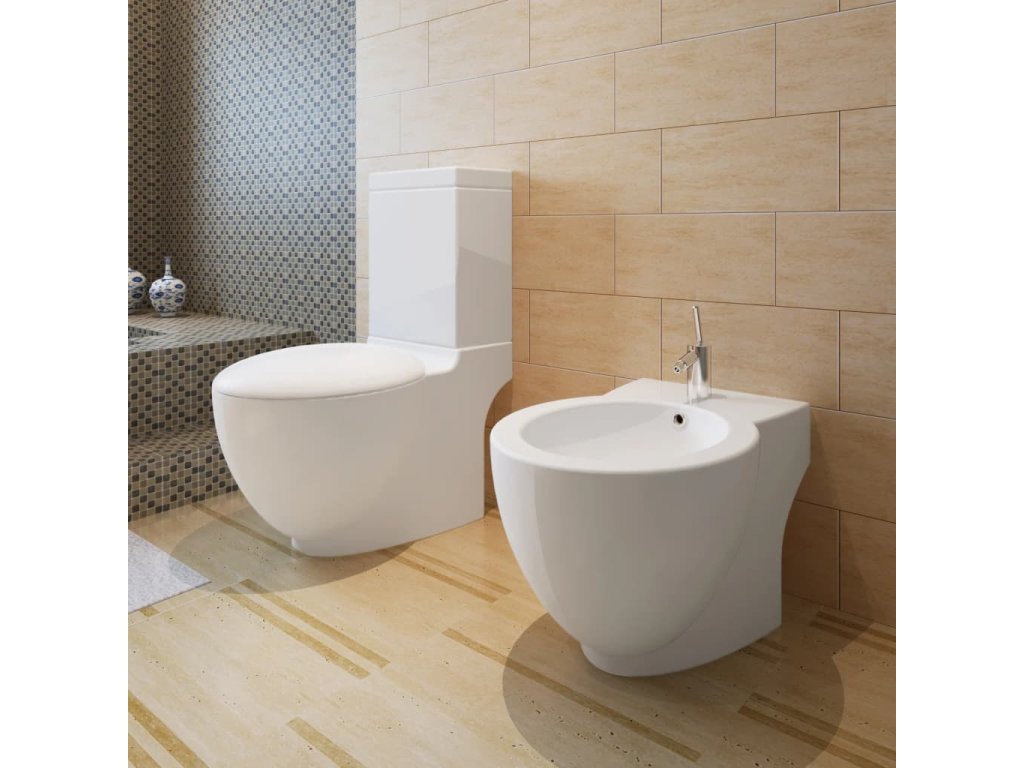 Stojící záchodová mísa v sadě s bidetem, s nadčasovým designem , který dodá styl do každé koupelny . Součástí balení je také kontejner, který vám umožní spláchnout v praktickém a nákladově efektivním způsobem ( 3 nebo 6 litrů) .Klapka je vybavena měkkým těsným mechanismem, který zabraňuje bouchání , jen dotyk prstu a automaticky se uzavře .Bidet , s unikátním tvarem zajišťuje pohodlí na nejvyšší úrovni . Bude se starat o osobní hygienu a přinése úlevu v některých chorobných stavech . Vyrobene z vysoce kvalitní keramiky , zaručí dlouhodobe použivání .