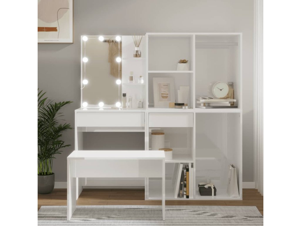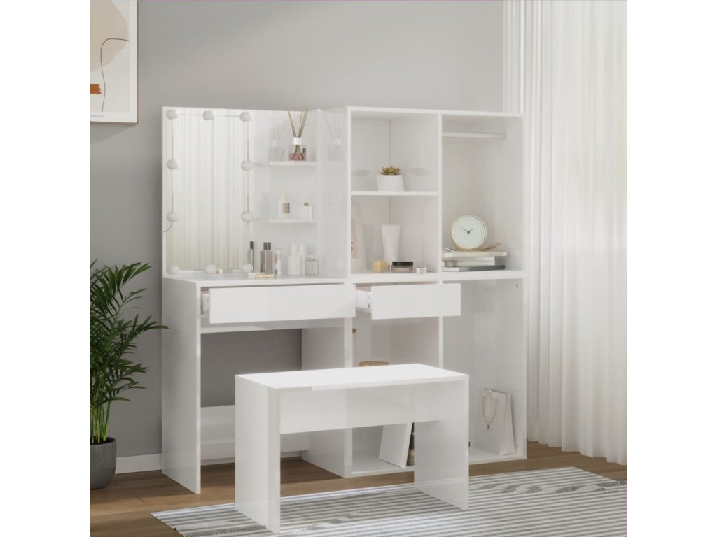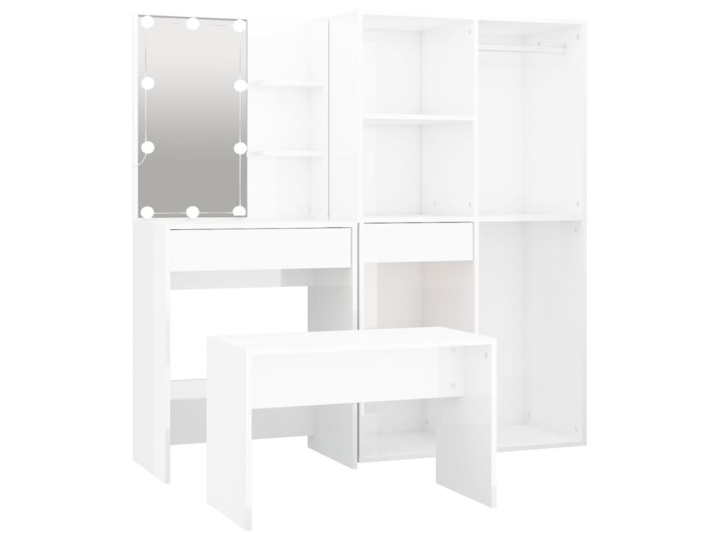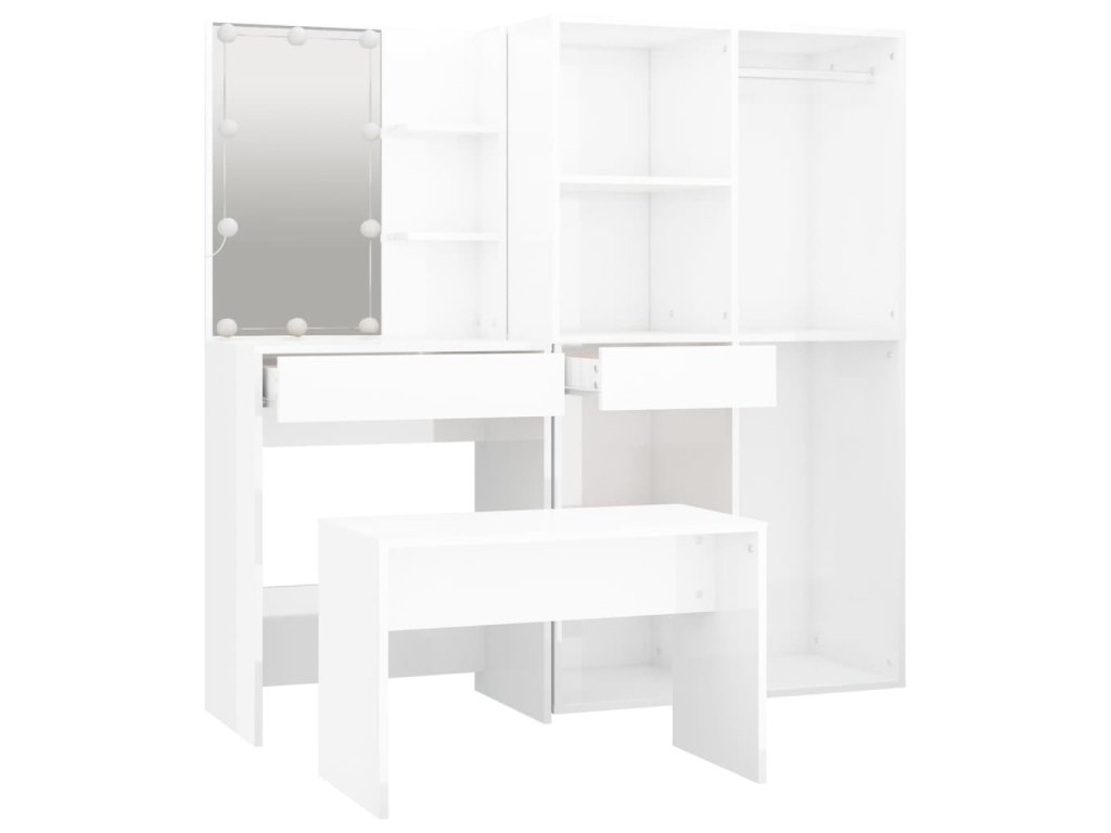 Toaletní stolek sada s LED bílý vysoký lesk kompozitní dřevo 3114103