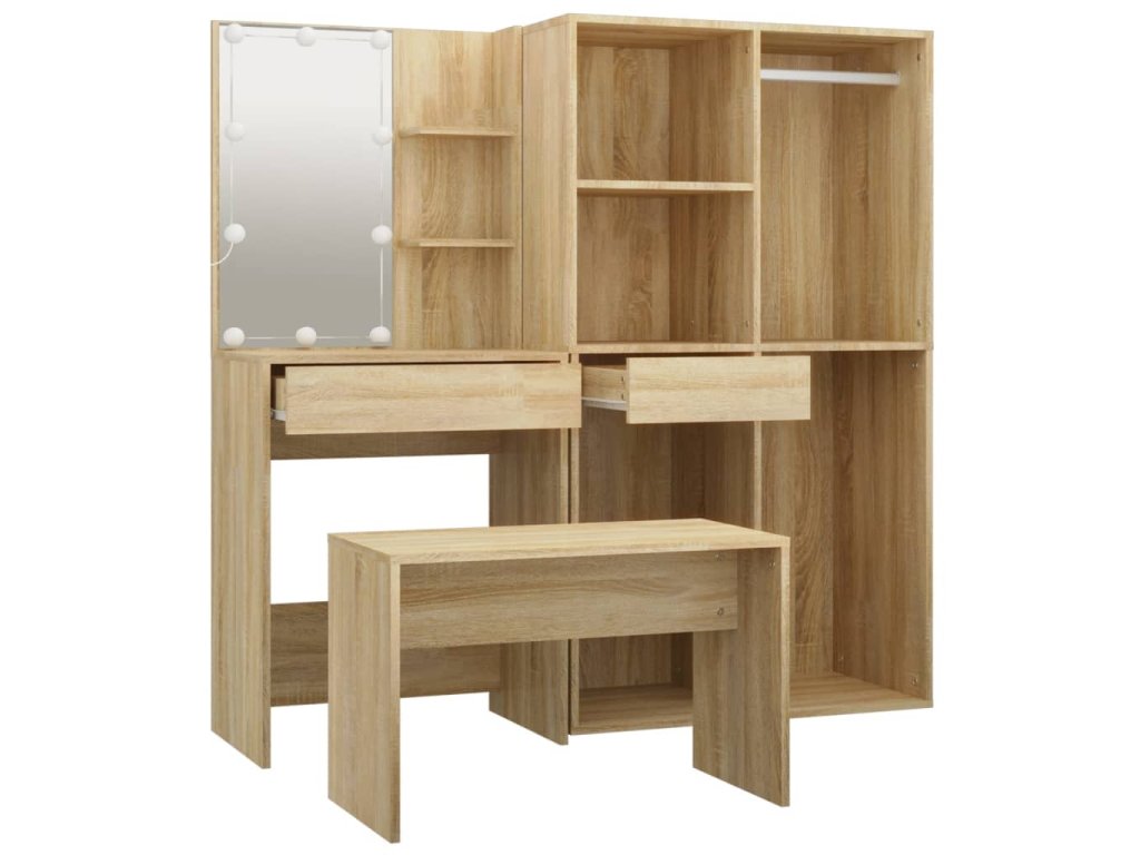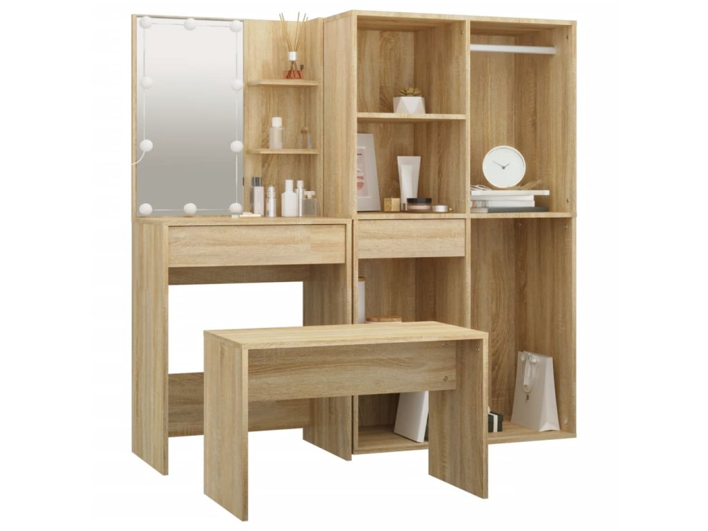 Toaletní stolek sada s LED dub sonoma kompozitní dřevo 3114101