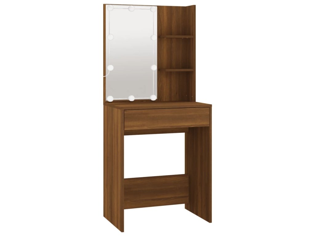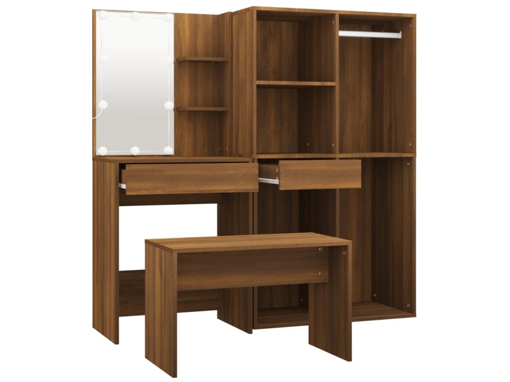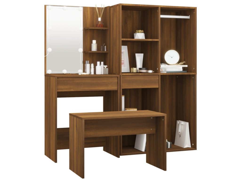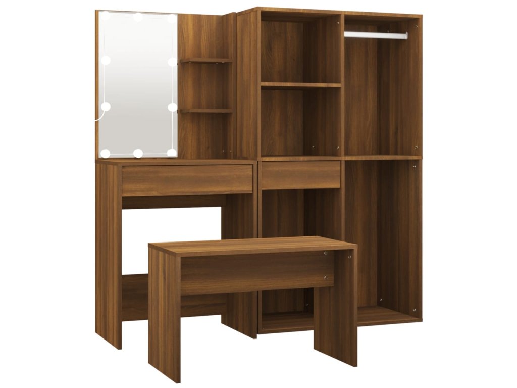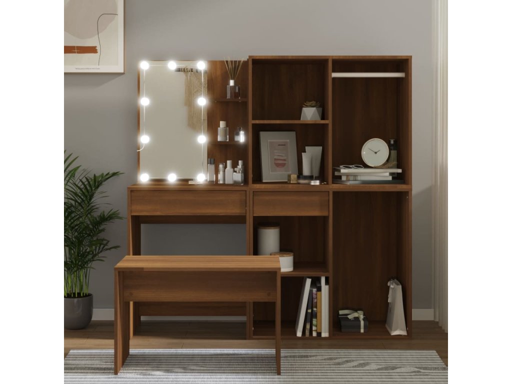 Toaletní stolek sada s LED hnědý dub kompozitní dřevo 3114106