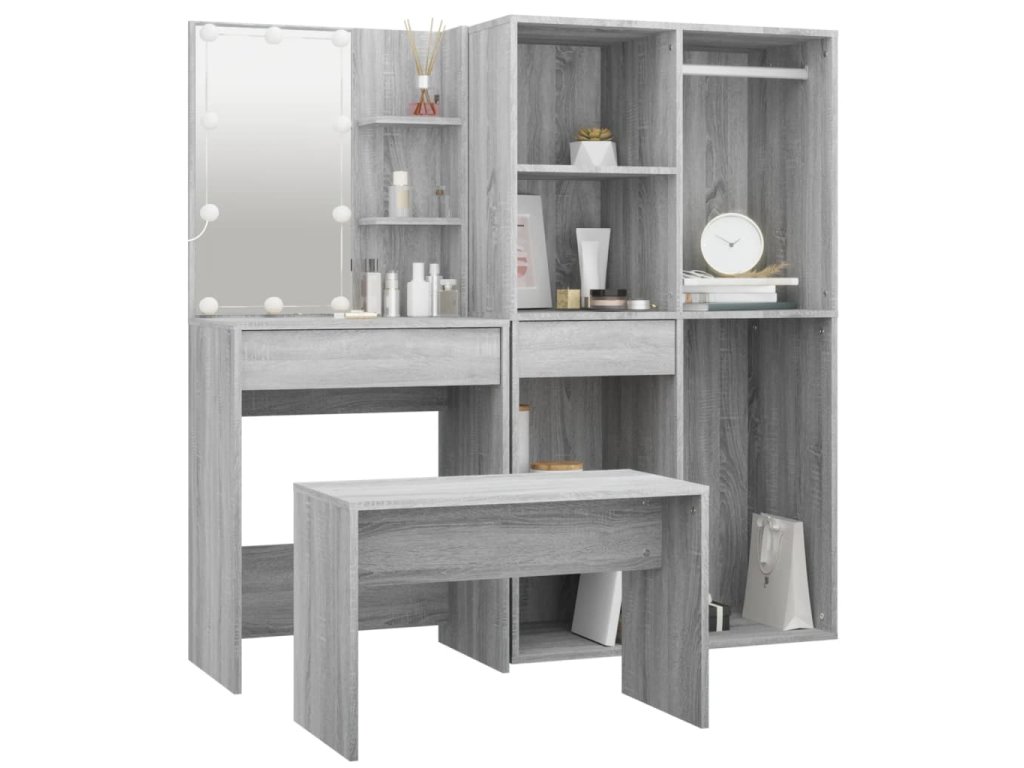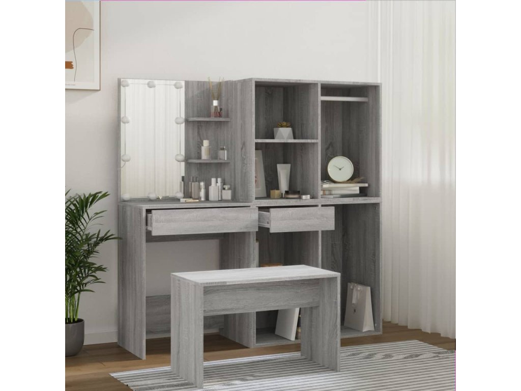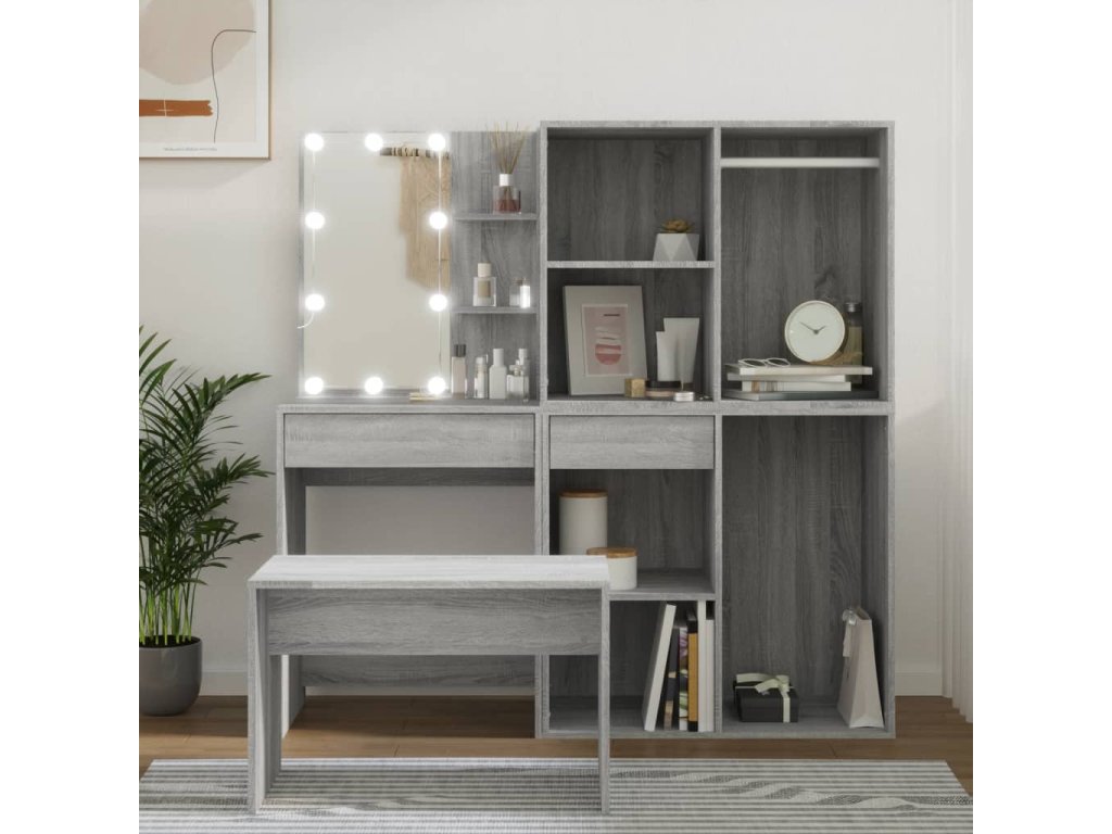 Toaletní stolek sada s LED šedý sonoma kompozitní dřevo 3114105