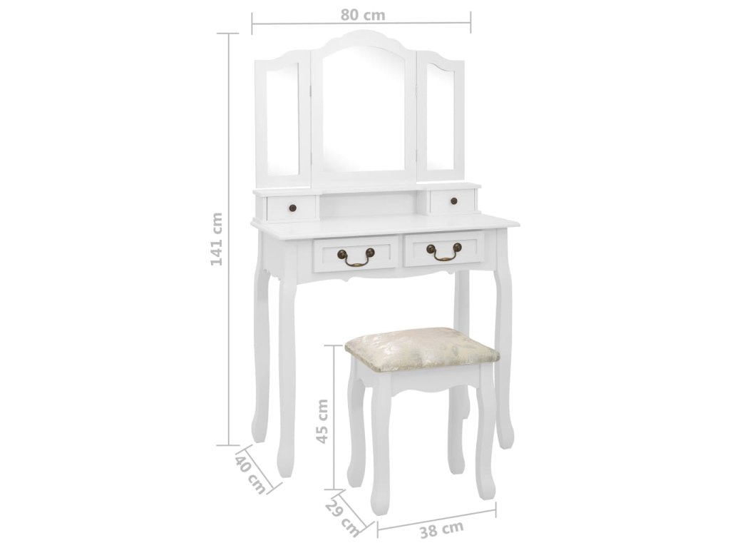 Toaletní stolek se stoličkou bílý 80 x 69 x 141 cm pavlovnia 289318
