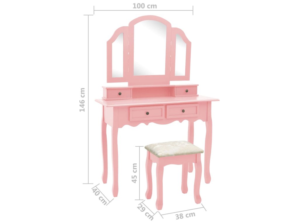 Toaletní stolek se stoličkou růžový 100 x 40 x 146 cm pavlovnia 289323