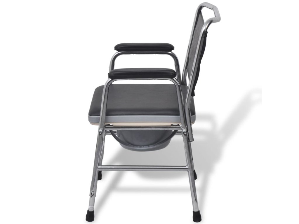 Tato odolná toaletní židle s nosností až 100 kg má dlouhou životnost a je vhodná pro každodenní použití. WC křeslo je vybavené mimořádně velkou nádobou, kterou lze vyjmout a vyprázdnit. Toaletní křeslo je doplněné poduškou na sedák, takže ho můžete snadno změnit na běžnou židli. Židle je vyrobená z pevné oceli a je lehká a bytelná.
