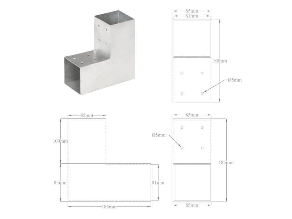 Trámová spojka 4 ks ve tvaru L pozinkovaný kov 81 x 81 mm 145462