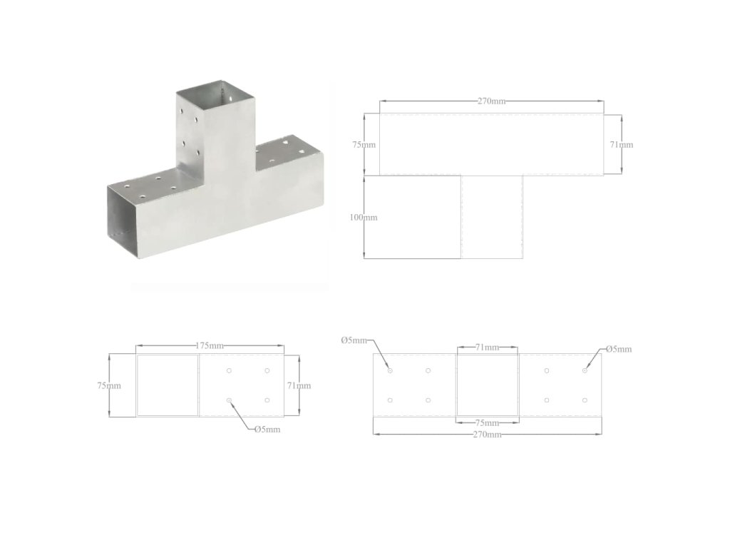 Elektrogalvanizovaná spojka umožňuje snadné připojení a spojení trámů nebo nosníků. Všechny spojky jsou předvrtané. Tato trámová spojka je určená pro 3 čtvercové dřevěné trámy s hranou o délce 71 mm.