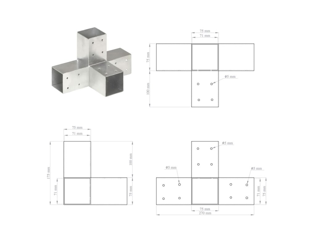 Elektrogalvanizovaná spojka umožňuje snadné připojení a spojení trámů nebo nosníků. Všechny spojky jsou předvrtané. Tato trámová spojka je určená pro 4 čtvercové dřevěné trámy s hranou o délce 71 mm.