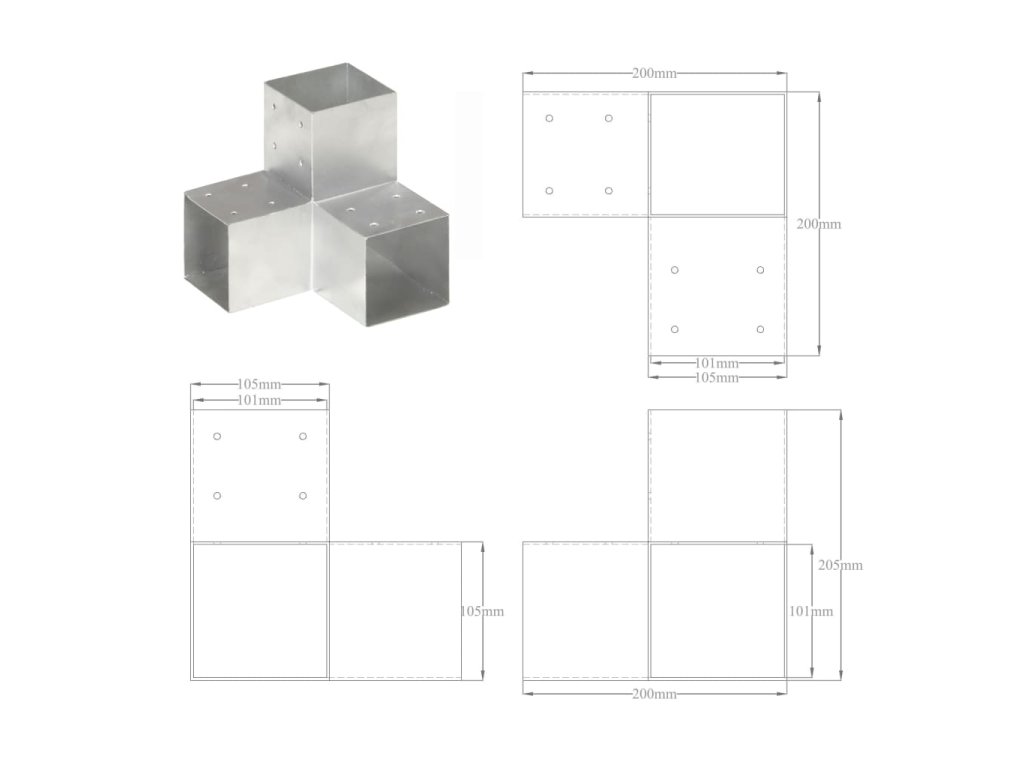 Trámová spojka 4 ks ve tvaru Y pozinkovaný kov 101 x 101 mm 145482