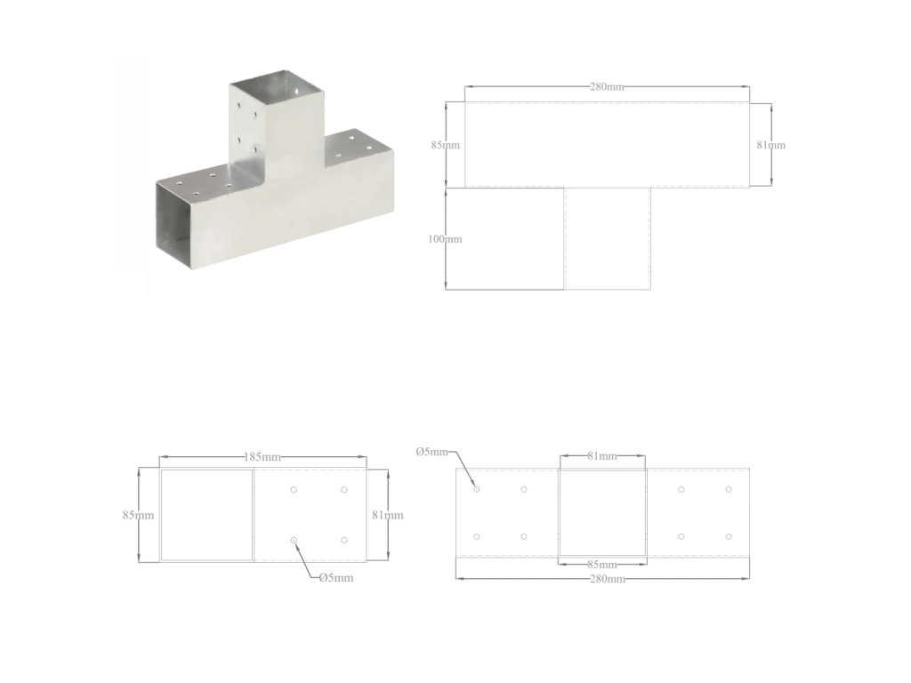 Elektrogalvanizovaná spojka umožňuje snadné připojení a spojení trámů nebo nosníků. Všechny spojky jsou předvrtané. Tato trámová spojka je určená pro 3 čtvercové dřevěné trámy s hranou o délce 81 mm.